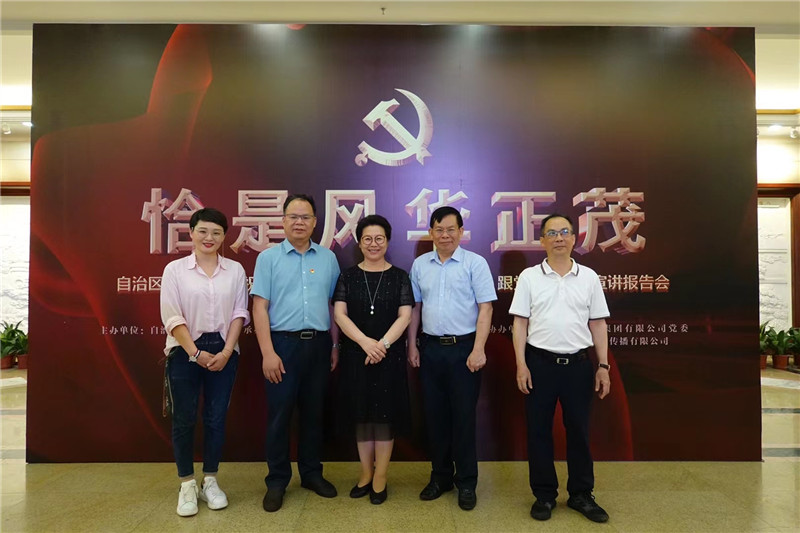 5月30日,由自治區國資委黨委主辦,廣西北部灣投資集團、集團公司黨委承辦,廣西路橋工程集團黨委、北京人間道文化傳播有限公司協(xié)辦的“恰是風(fēng)華正茂——自治區國資國企慶祝中國共產(chǎn)黨成立100周年‘感黨恩 跟黨走’主題宣講報告會(huì )”在廣西人民會(huì )堂精彩亮相。集團公司黨委書(shū)記、董事長(cháng)黃軒莊,黨委副書(shū)記、紀委書(shū)記藍廖國,首席編輯曹光哲出席報告會(huì )。