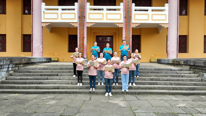 4月27日下午,雨后的王城校區,青蔥翠綠間透露出國學(xué)堂黃色、紅色斑駁相雜的墻壁,承運殿前,林蔭道上,獨秀峰下,月牙池畔,讀書(shū)巖前,飄揚著(zhù)基教第二黨支部黨員同志們鏗鏘有力的朗讀聲和串串銀鈴般的笑聲。“憶往昔,崢嶸歲月稠”,大家在朗誦中回憶青春,揮灑汗水,更加堅定了立足工作崗位,緊跟新形勢新政策,強化使命擔當的決心。