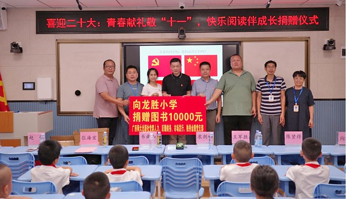 青少年是祖國的未來(lái),是民族的希望,是共產(chǎn)主義的接班人。恰逢新中國成立73周年,集團四個(gè)支部黨員通過(guò)自主捐贈,為龍勝鎮小學(xué)共捐贈了10000元碼洋的圖書(shū),用行動(dòng)踐行出版企業(yè)的責任與擔當,用書(shū)香喜迎“二十大”的召開(kāi),讓閱讀伴隨孩子茁壯成長(cháng)。