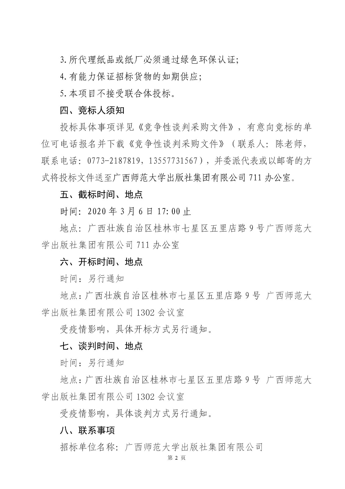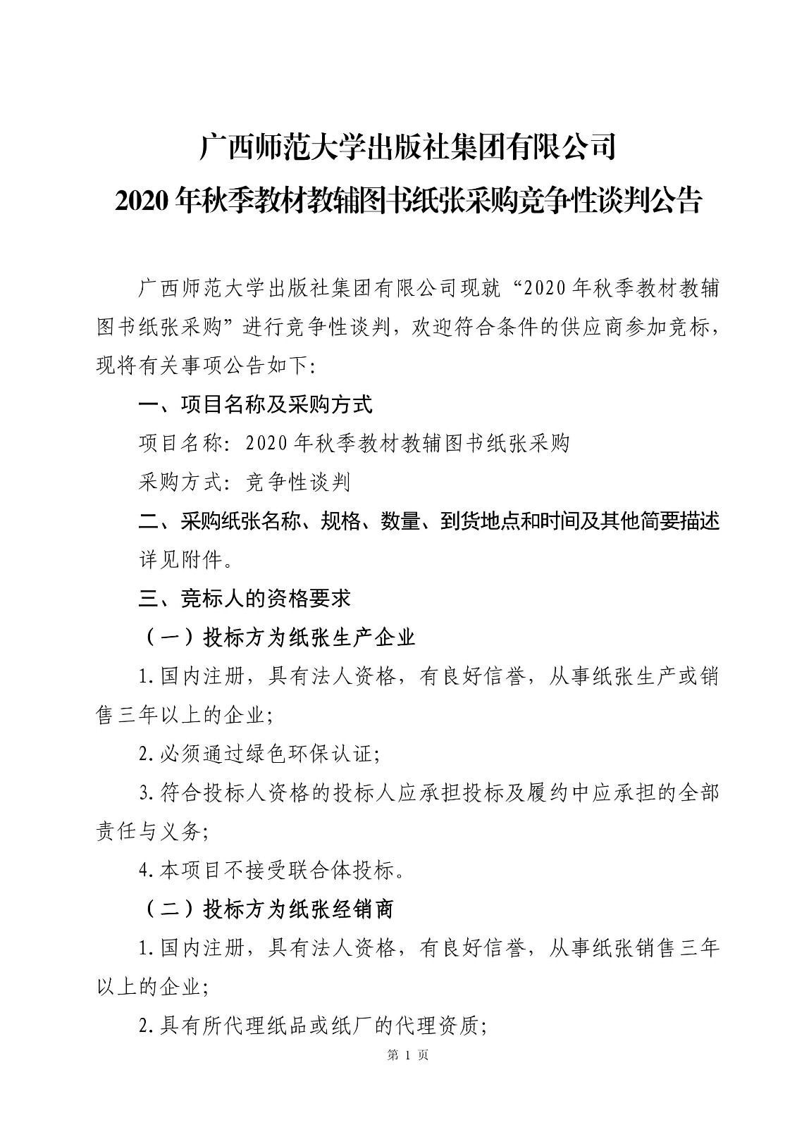 廣西師范大學(xué)出版社集團有限公司2020年秋季教材教輔圖書(shū)紙張采購競爭性談判公告